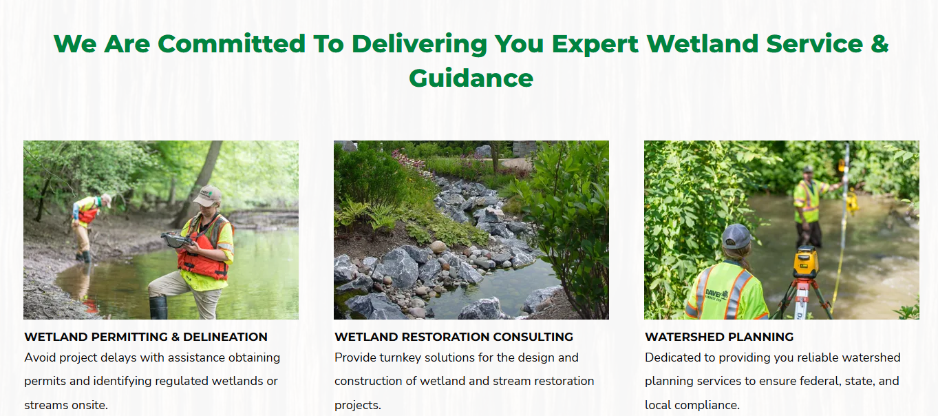 Davey Resource Group's wetland and stream services provide solutions for everything from government restoration projects to compensatory mitigation work for developers by offering environmental restoration services, natural resource consulting, wetland permitting and delineation, and more.